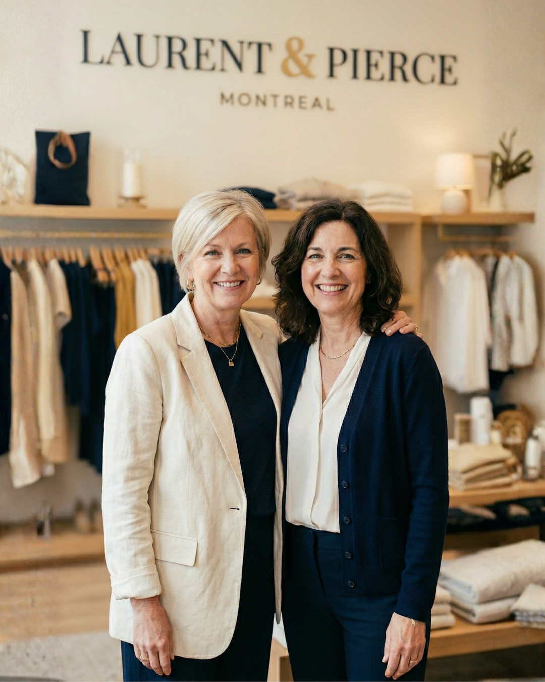 We're Eva Laurent and Claire Pierce — best friends and the two women behind Laurent & Pierce. We started this boutique together in Montreal in 2004, and after 22 incredible years, we've decided it's time to move on.